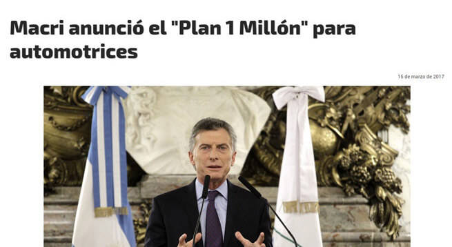 Macri anunció el "Plan 1 Millón" para automotrices.